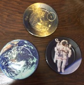 直径約18cmの宇宙にちなんだ柄の紙皿11種×各一枚が1セットになっています。
